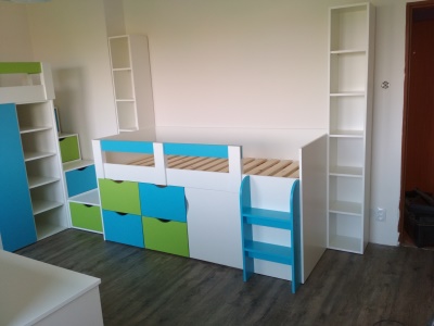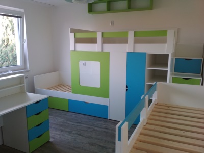 Výroba nábytku do dětských a studentských pokojů tvoří nejméně polovinu naší produkce. Nevyrábíme žádné moduly. Náš nábytek je od počátečních návrhů koncipován tak, aby splňoval požadavky zákazníka a zároveň odpovídal dispozici daného prostoru.